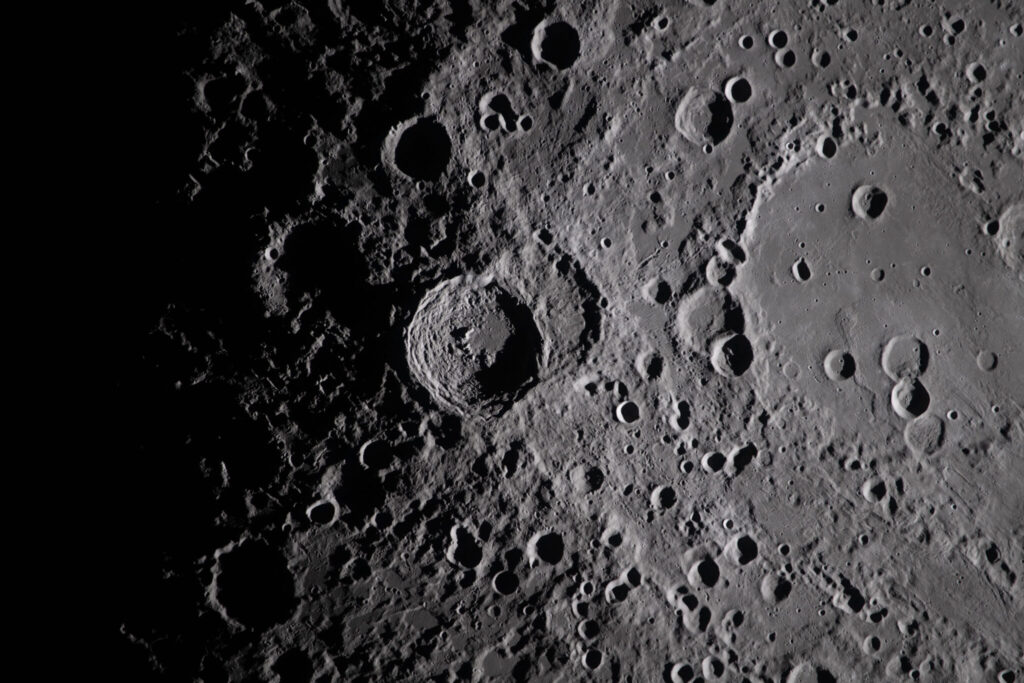 In this image provided by NASA, the Artemis II crew captured this image of the Vavilov Crater on the Moon during a lunar flyby, Monday, April 6, 2026. NASA via AP)