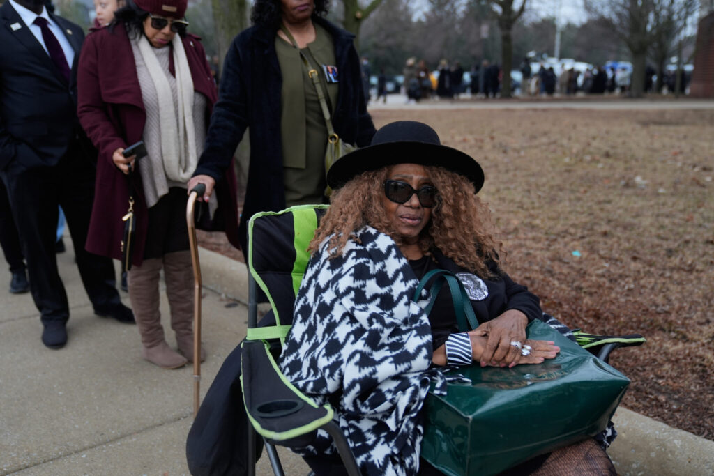 Lisa Fields waits on line to enter the Public Homegoing Service for the Rev. Jesse Jackson at the House of Hope in Chicago, Friday, March 6, 2026. (AP Photo/Erin Hooley)