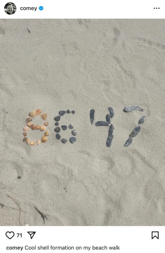 The controversy began last May when Comey shared a now-deleted Instagram photo showing seashells arranged on a beach to form the numbers “86 47.”