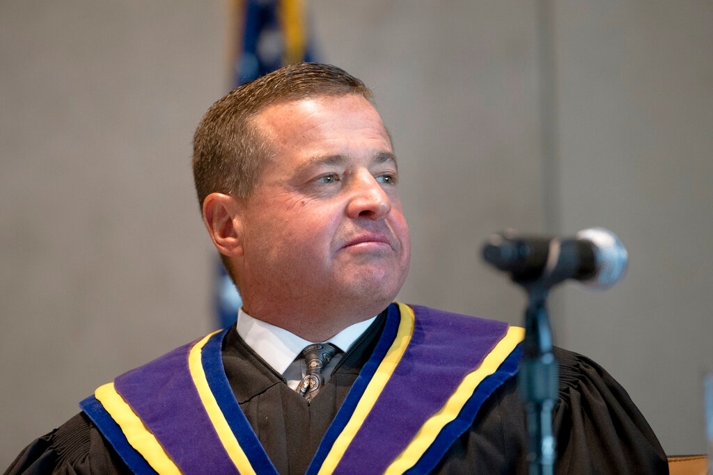 FILE – Pennsylvania Supreme Court Justice Kevin Dougherty speaks at his swearing in ceremony at the National Constitution Center in Philadelphia, Jan. 5, 2016. (AP Photo/Matt Rourke, File)